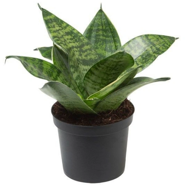 Snake plant draft with standard white / black pot .